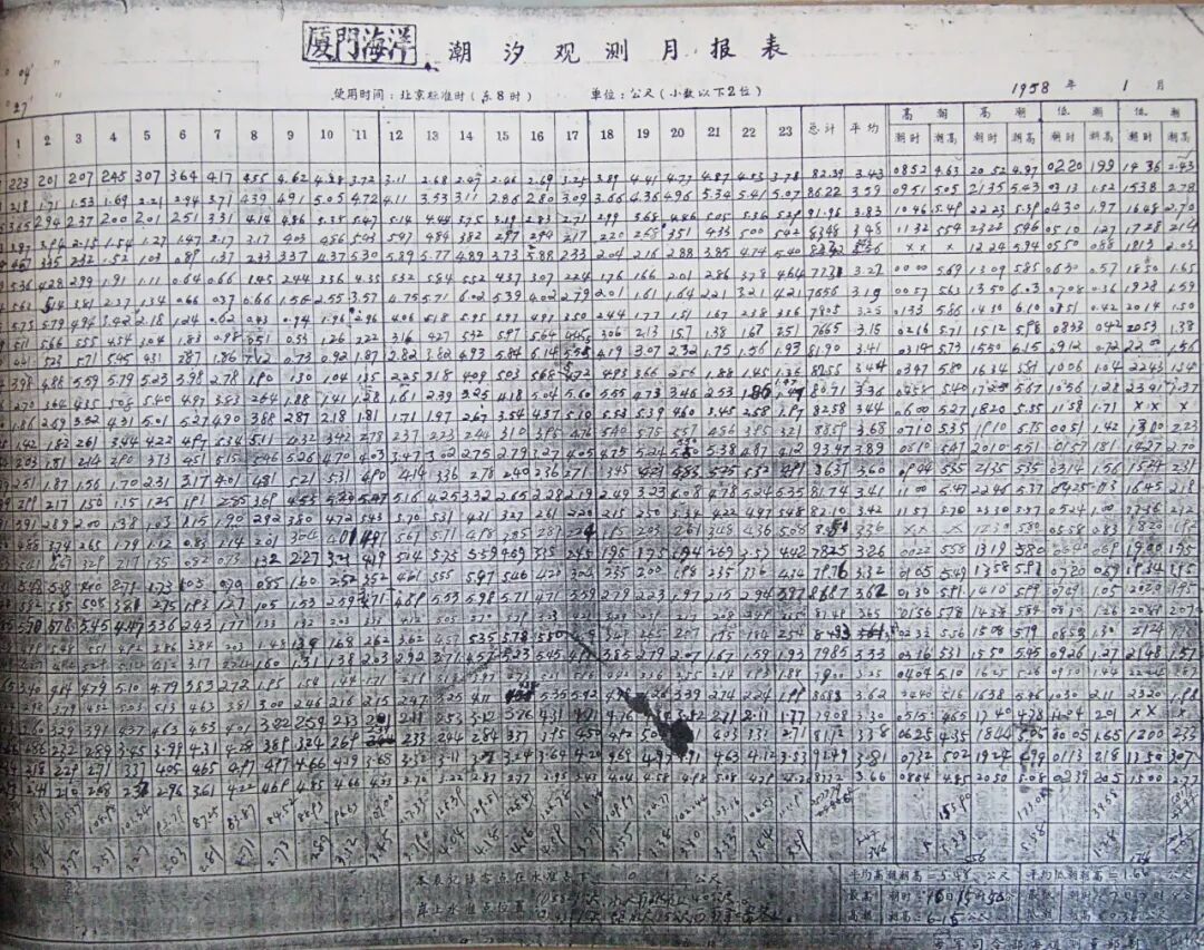 在计算机尚未问世的年代,所有的潮位、水温数据都被工作人员用钢笔,一丝不苟地填写在专用报表的一个个小方格里。
