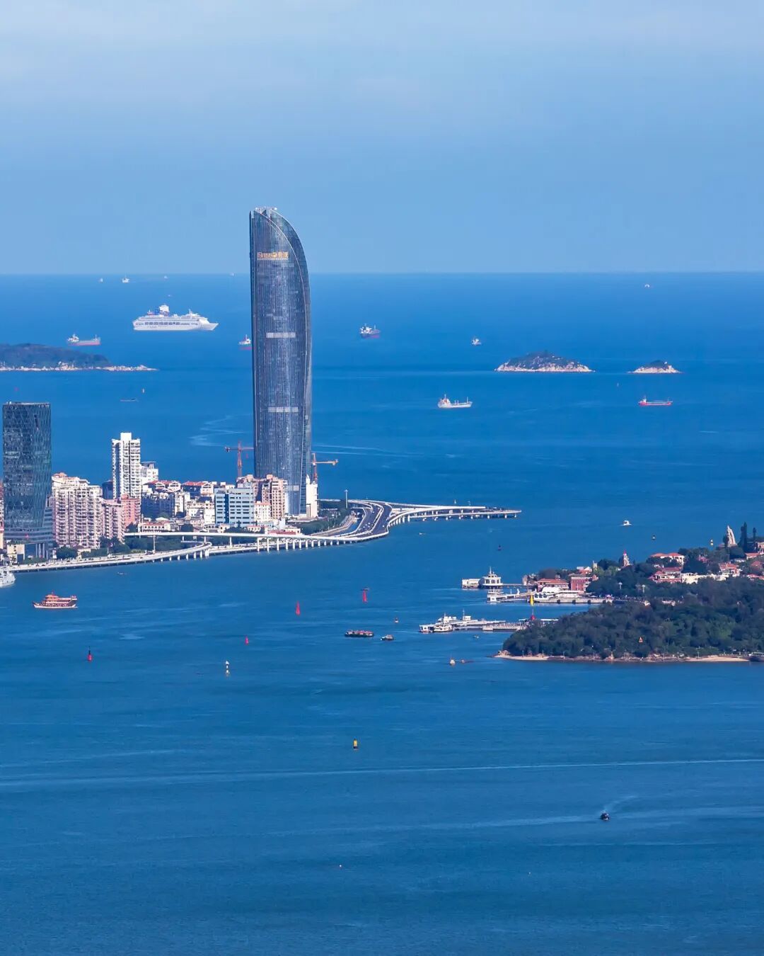 随着旧站房的拆除重建,一座圆形的现代化建筑静立于厦门港内,成为鹭江上的一道新风景。